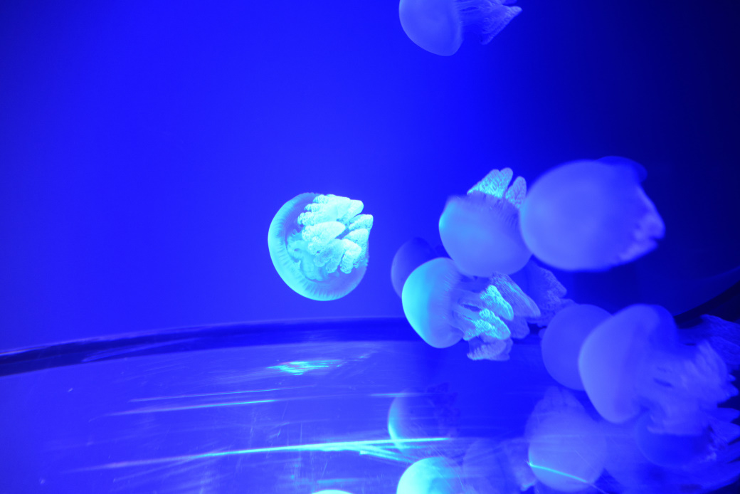 淡水水槽の次はクラゲが多く展示されています。これはミズクラゲ。